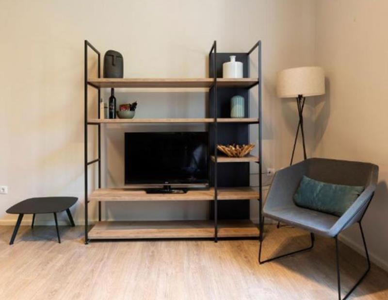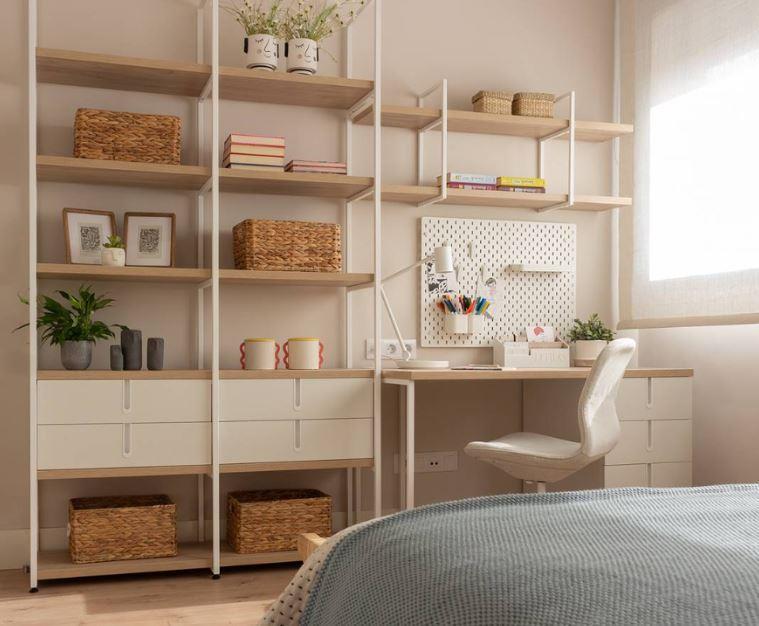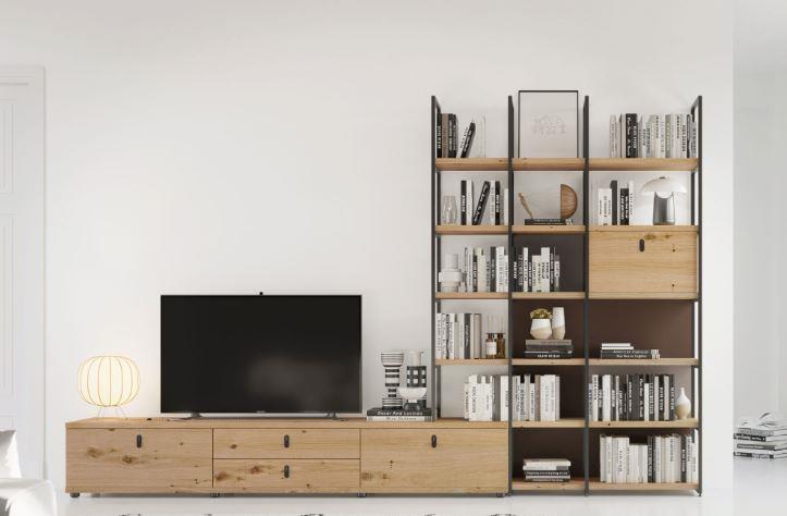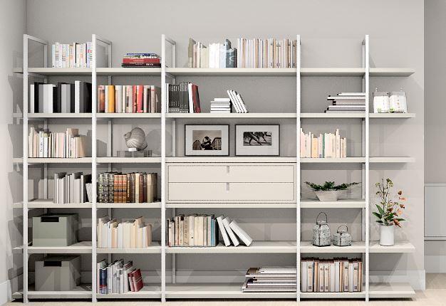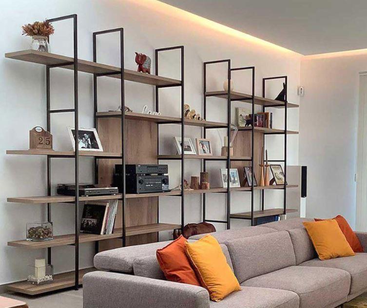 Con el mueble industrial creamos también estanterías para salones, despachos, dormitorios y demás piezas de la casa.